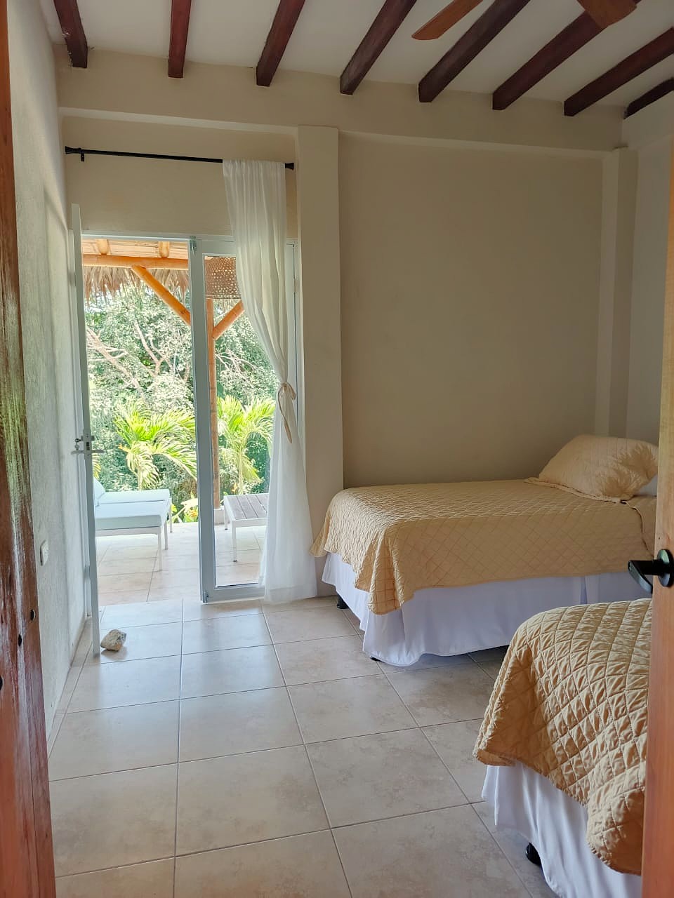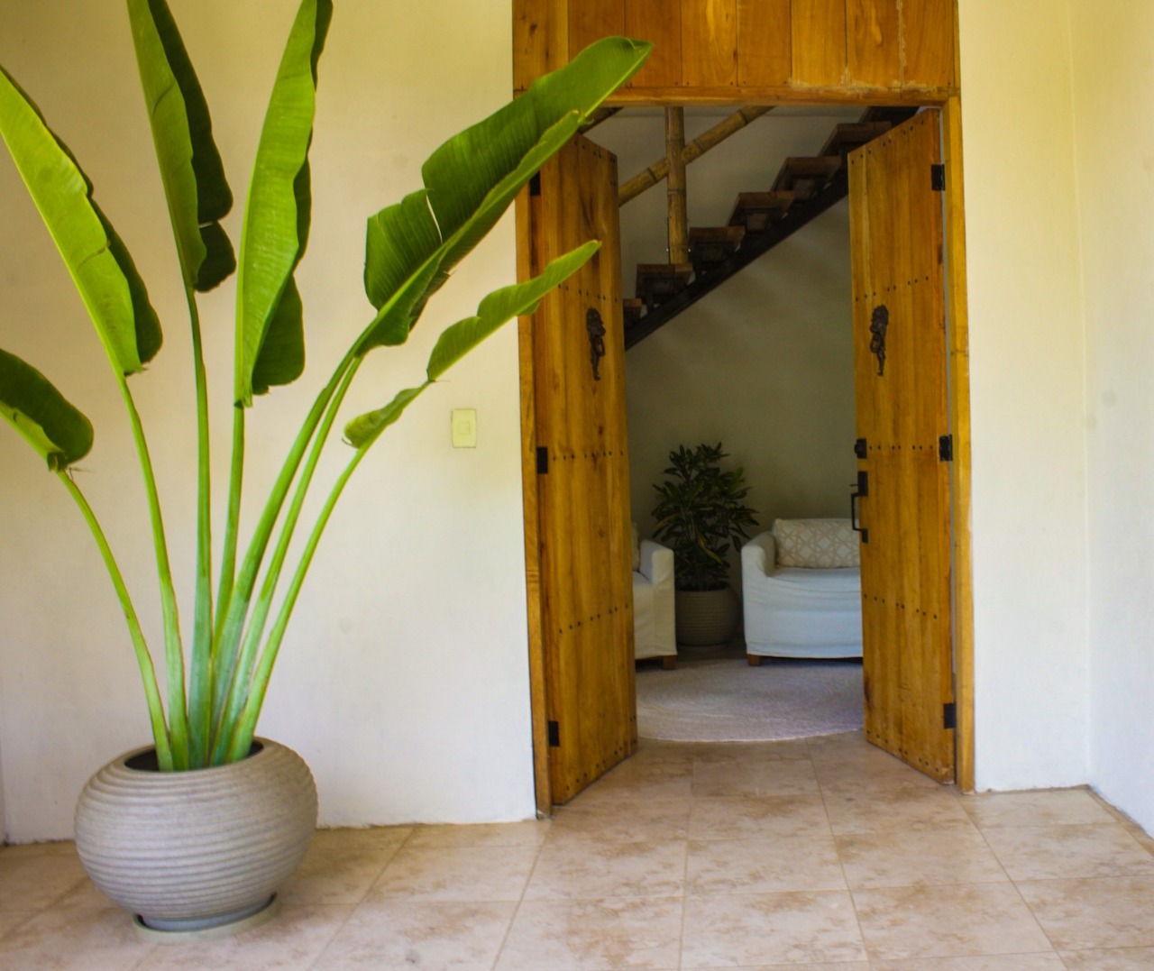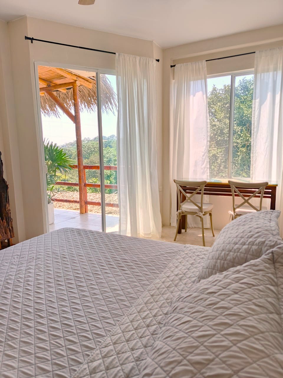 The ground level, also your main entrance has two bedrooms and two bathrooms, both bedrooms have access to an outside deck area surrounded by lush plants and comfortable hammocks for you to relax. On the second level, which is also the “main” level you have an open style kitchen, dining area and living room. As well as master bedroom with large bathroom and walk in closet. Large outdoor balcony/deck area equipped with exterior furniture. All the furnishings (many of which are custom made), appliances and decorations come included with the sale of this home!! There is a third floor watching deck which the owners have converted into a small “yoga shala.” The views all around are absolutely breathtaking. The outdoor are has grass, a fire pit and access to a separate “casita” which is currently being used as a storage room but can be transformed into a caretaker’s suite or visitor’s suite. There are 3 retaining walls built, the property is sturdy and has an incredible foundation. The property comes with parking (fits two vehicles) as well as a fully functional and brand new power bank which could supply the entire house with electricity for up to 6 hours in the event of any power outages.